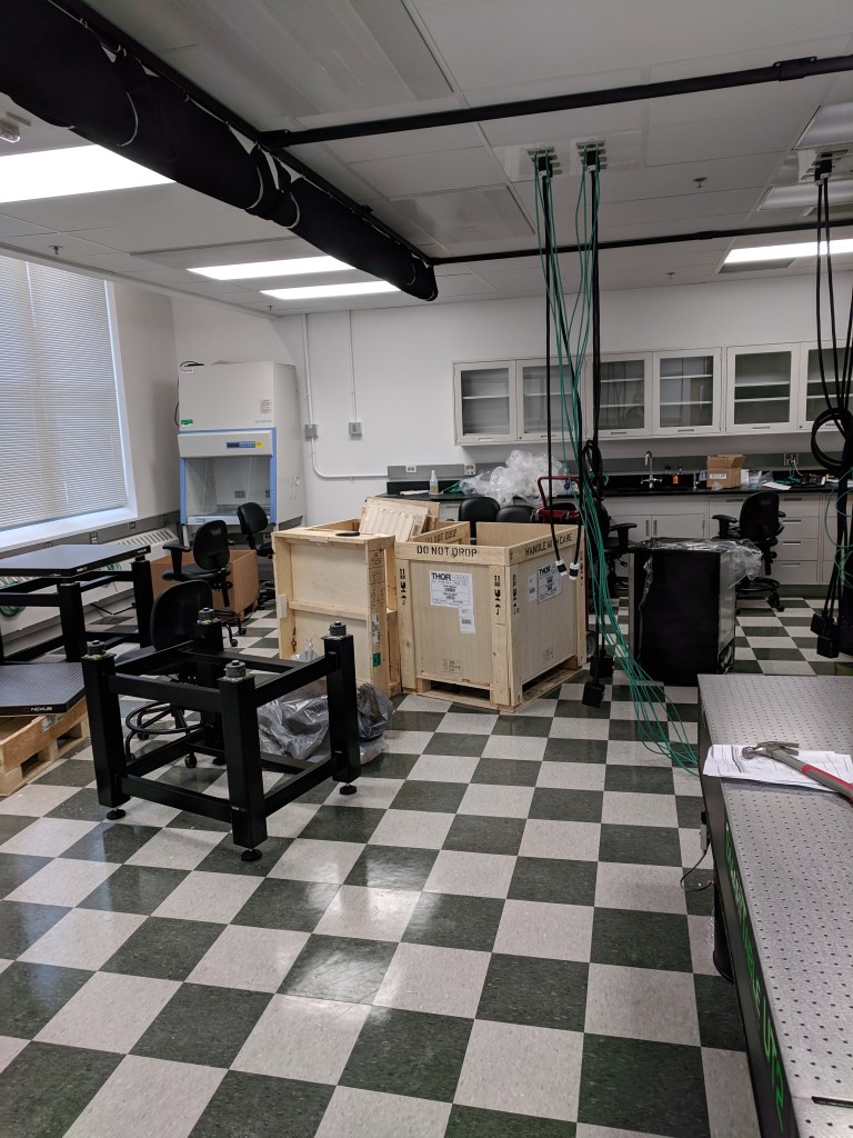 Now that the renovations to the lab space are done, we can start unpacking and building our experiments.